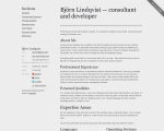 Professional resume site for Björn Lindqvist. For prospective employers and clients. Incorporated and looking for freelance work.